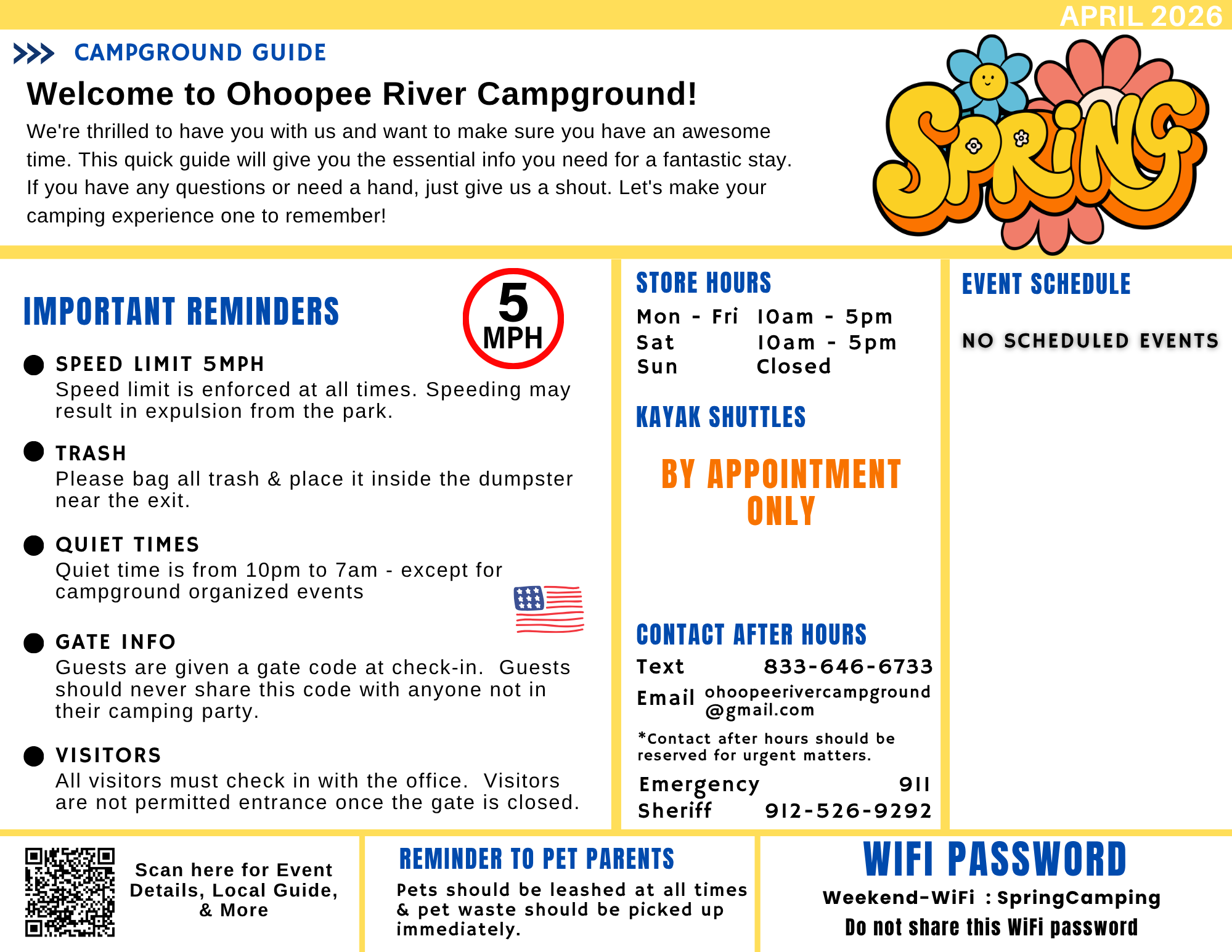 We're thrilled to have you with us and want to make sure you have an awesome time. This quick guide will give you the essential info you need for a fantastic stay. If you have any questions or need a hand, just give us a shout. Let's make your camping experience one to remember!